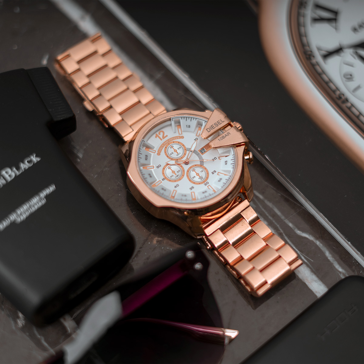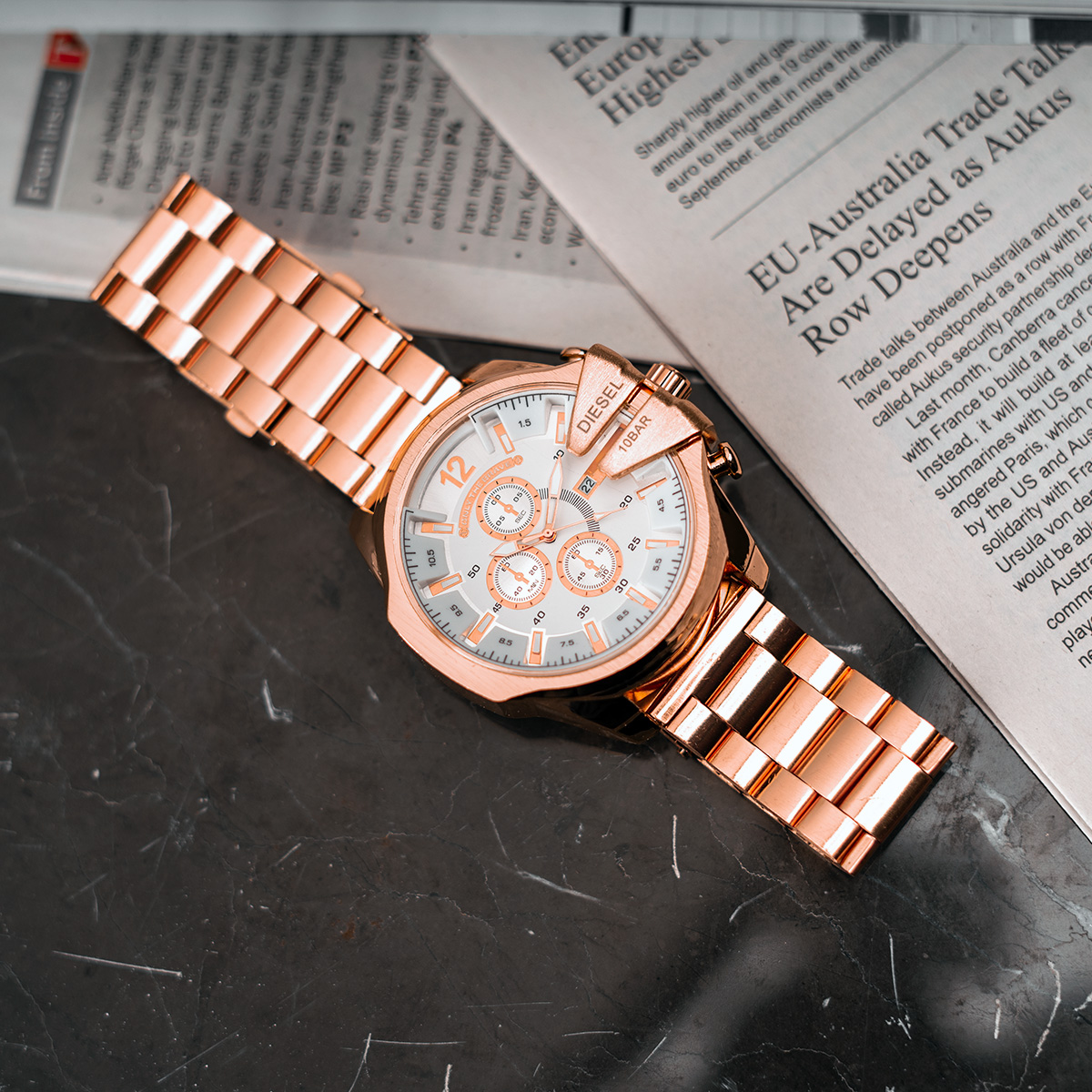 ساعت مچی DIESEL مردانه رزگلد صفحه سفید مدل U700