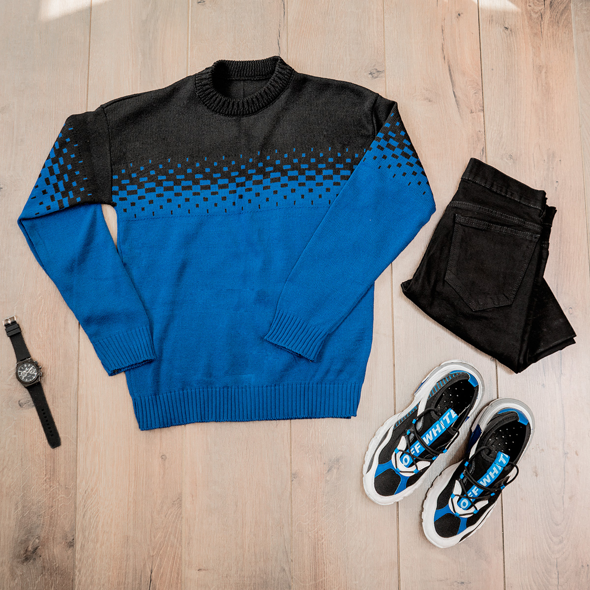 پلیور مردانه دو رنگ آبی مشکی مدلShatel