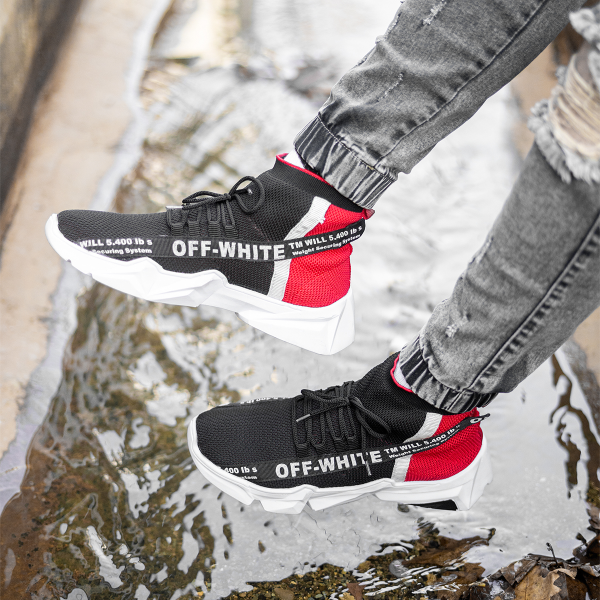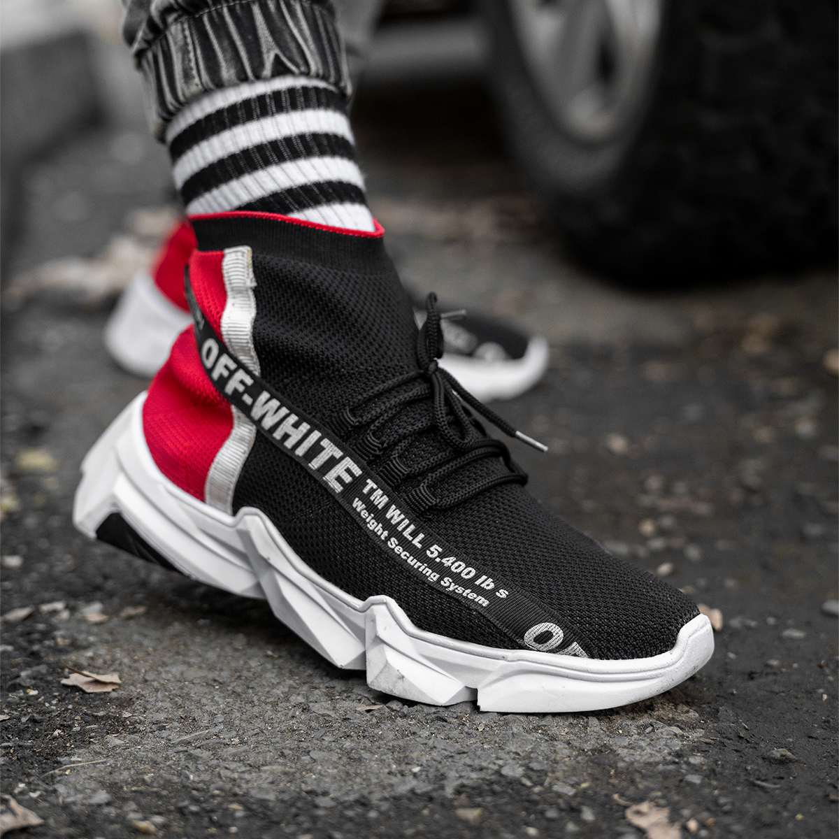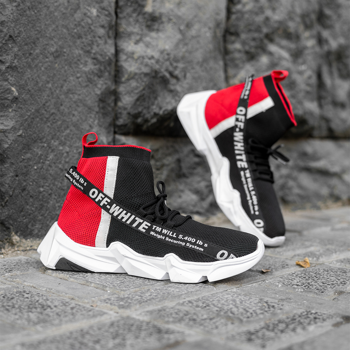 کفش ورزشی ساقدار مردانه مشکی قرمز مدلSasan