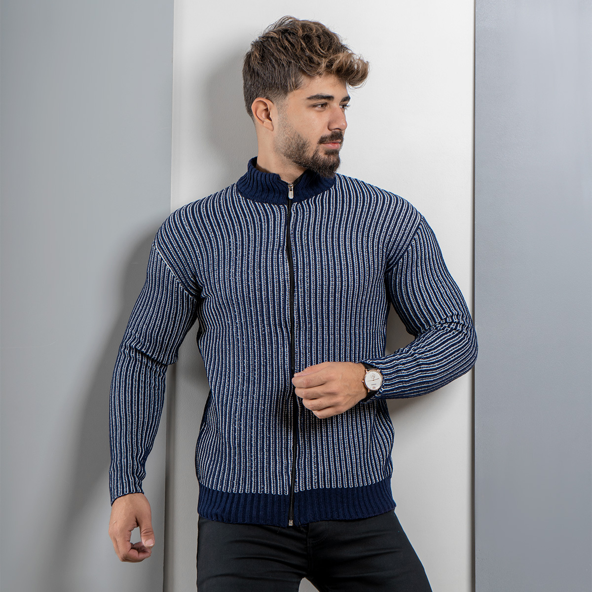 سوییشرت بافت (T)زیپ دار سرمه ای مدلANOSH