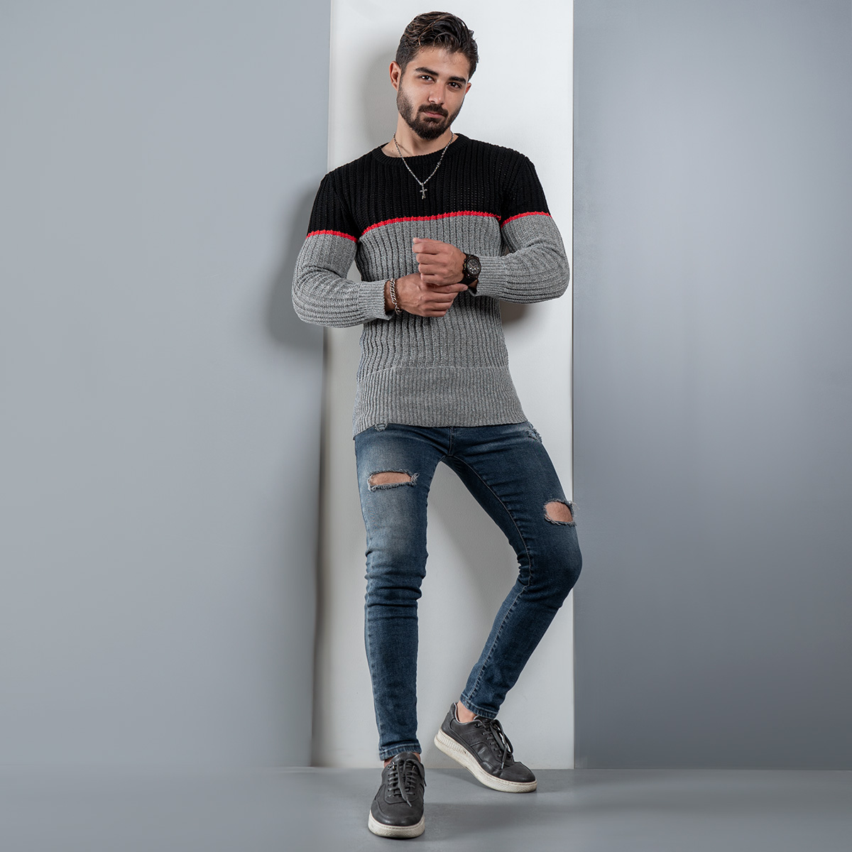 پلیور اندامی (T) طوسی مشکی مردانه مدل Adnan