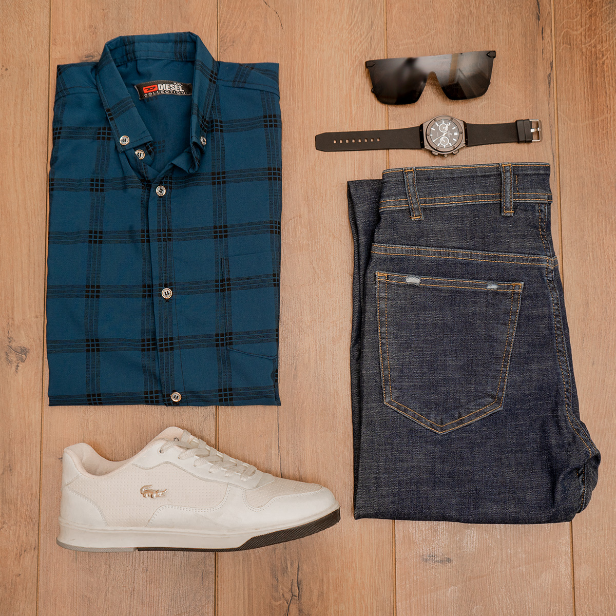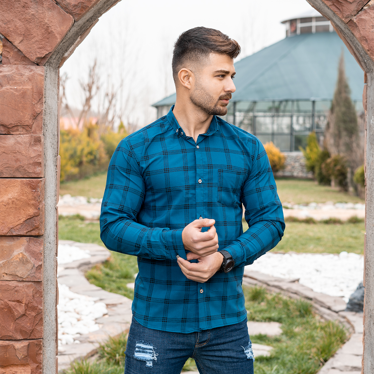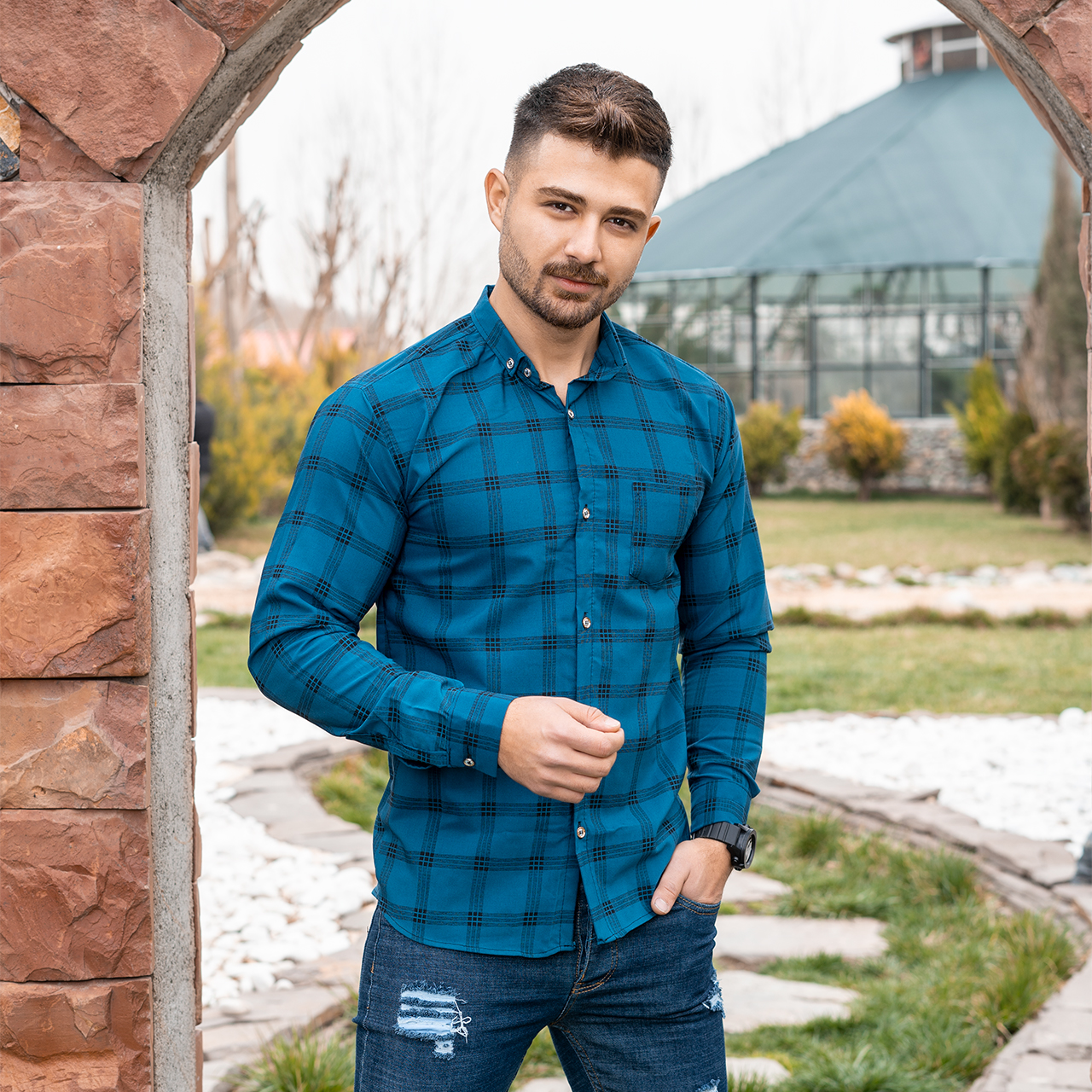 پیراهن مردانه چهارخونه آبی مدل Ravin