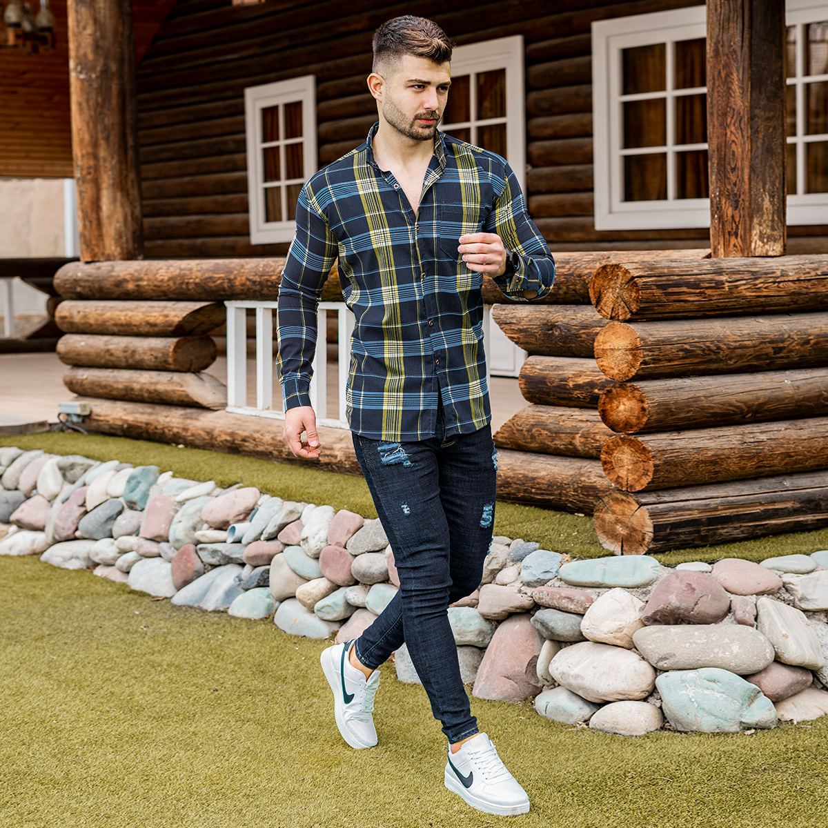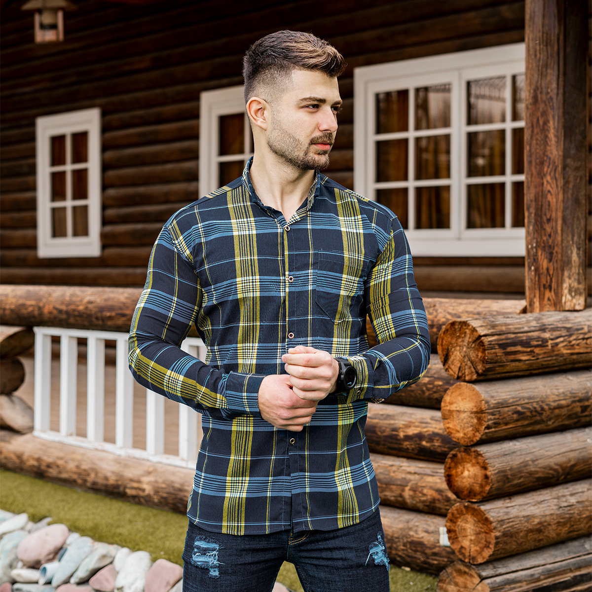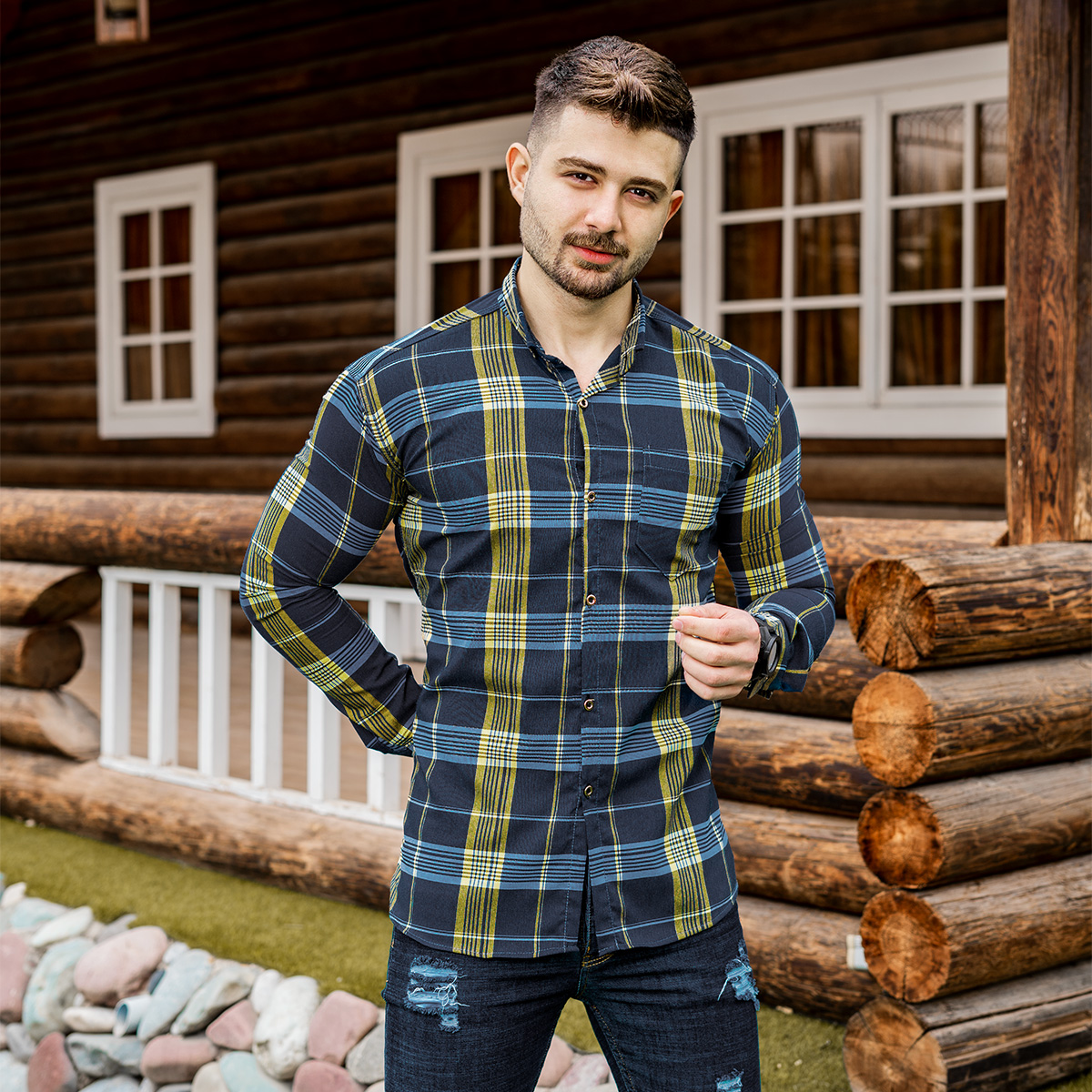 پیراهن راه راه مردانه زرد آبی مدلwigo