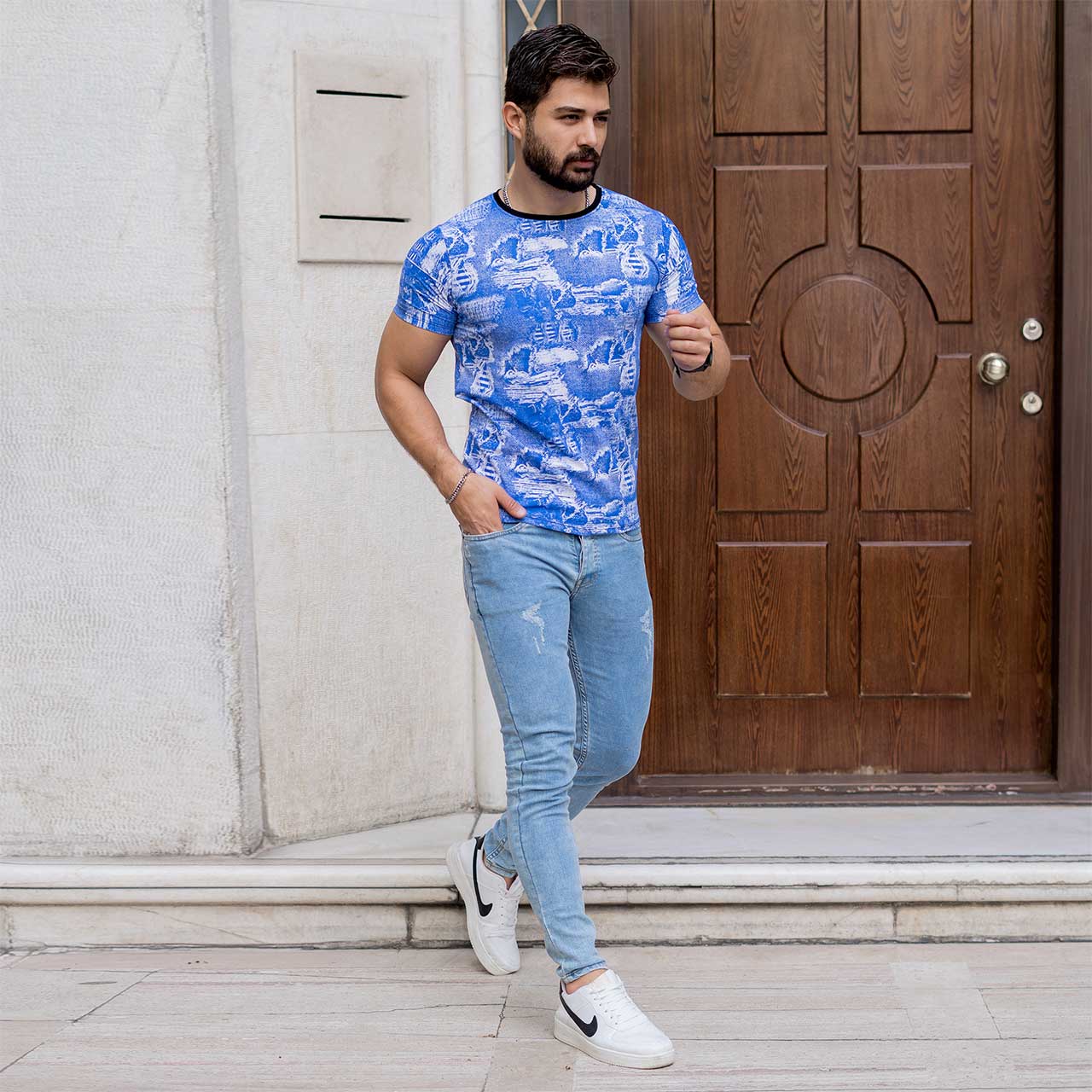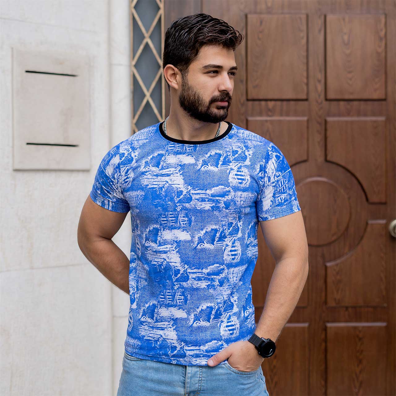 تیشرت طرحدار آبی مردانه مدل TOTIX