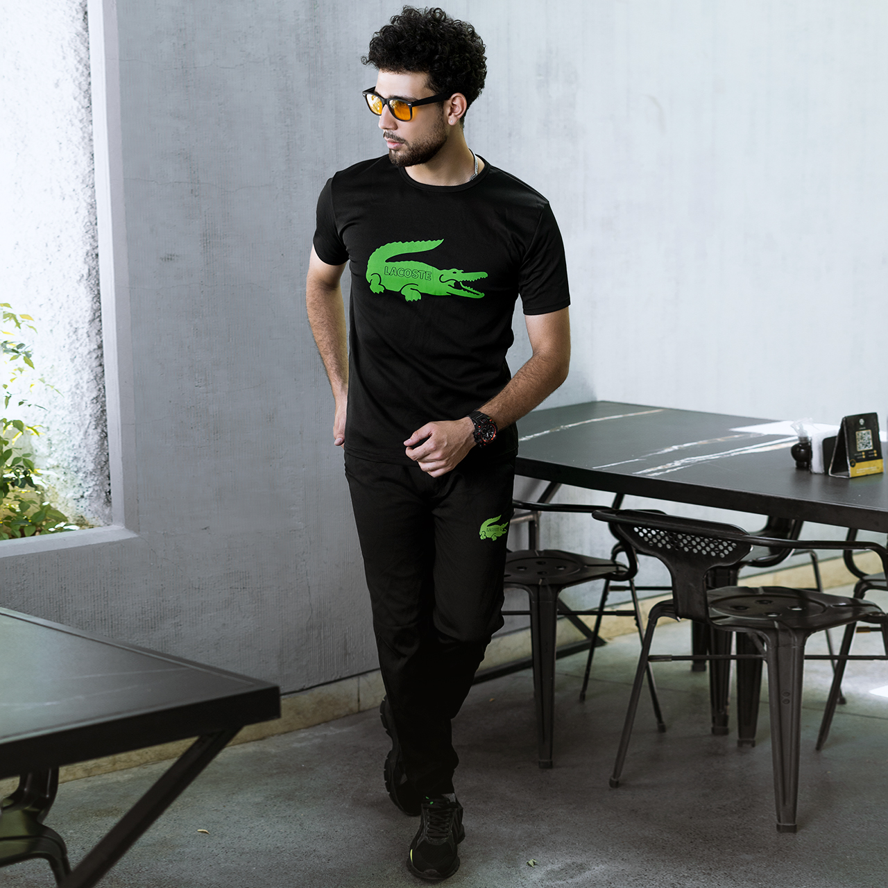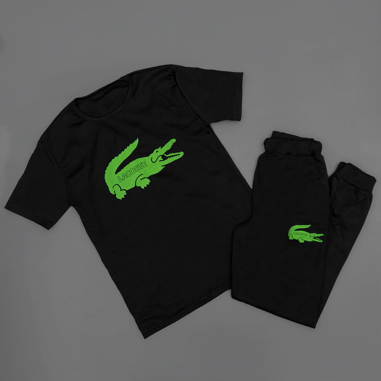 ست تیشرت شلوار لاگوست مشکی مدلRE200