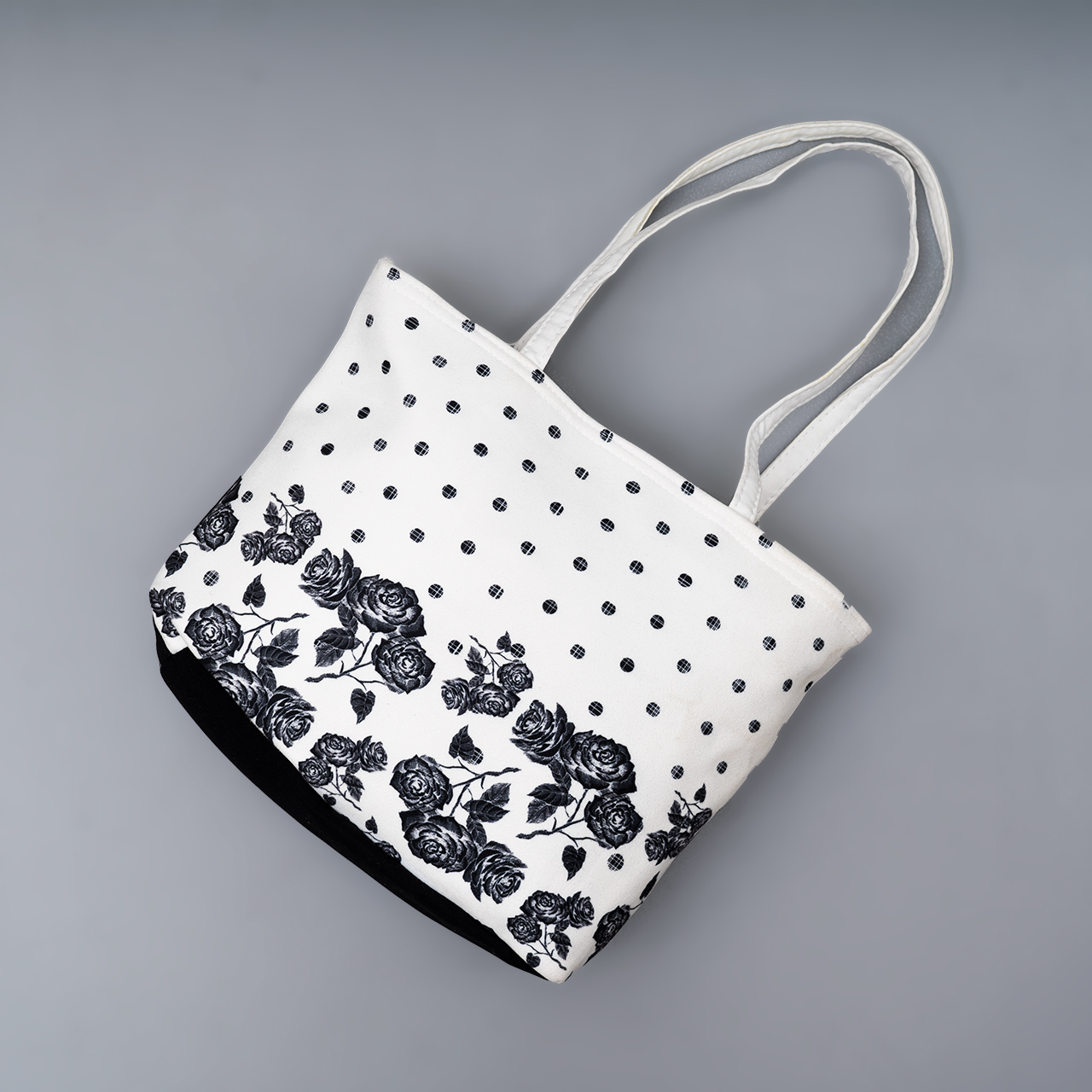 کیف دوشی سیاه سفید طرح گل زنانه مدلX64 *جنس کیف پارچه سایز کیف : 36CM*29CM*8CM
