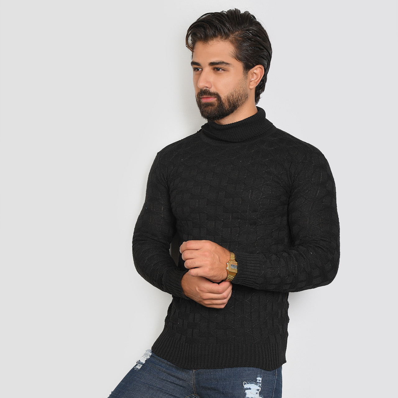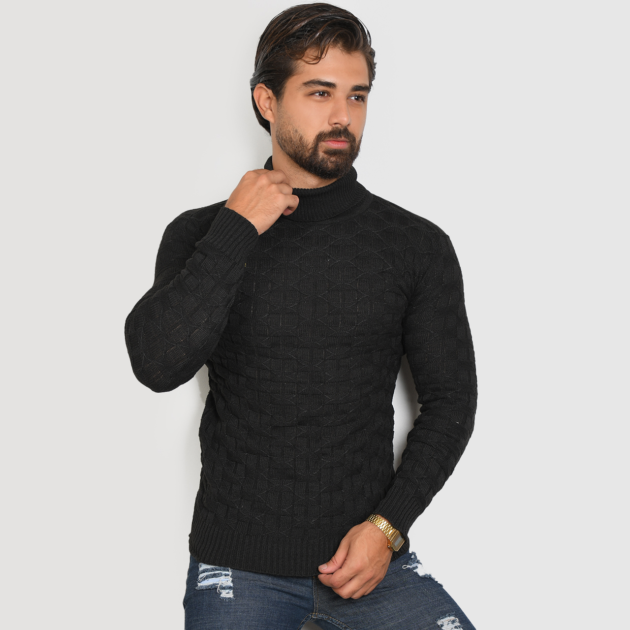 پلیور یقه اسکی مشکی طرح لوزی مردانه مدلG10