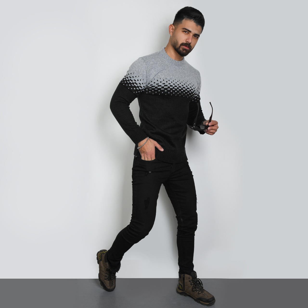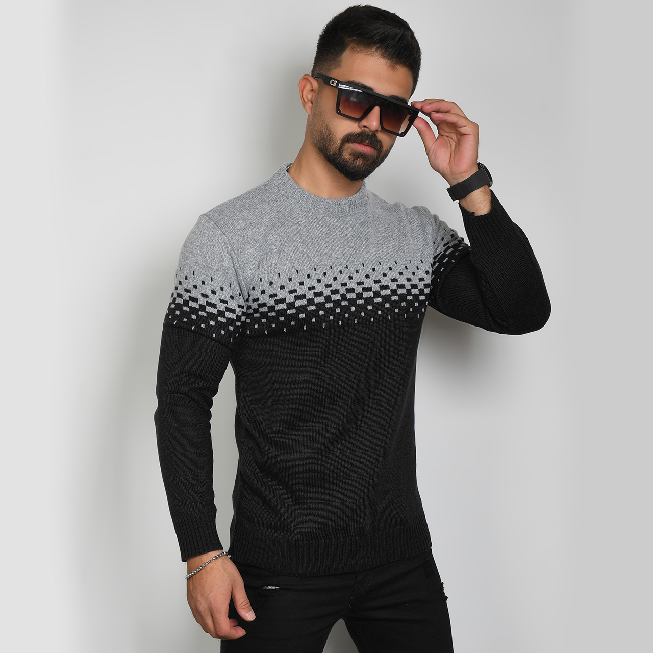 پلیور مردانه دو رنگ مشکی طوسی مدلShatel