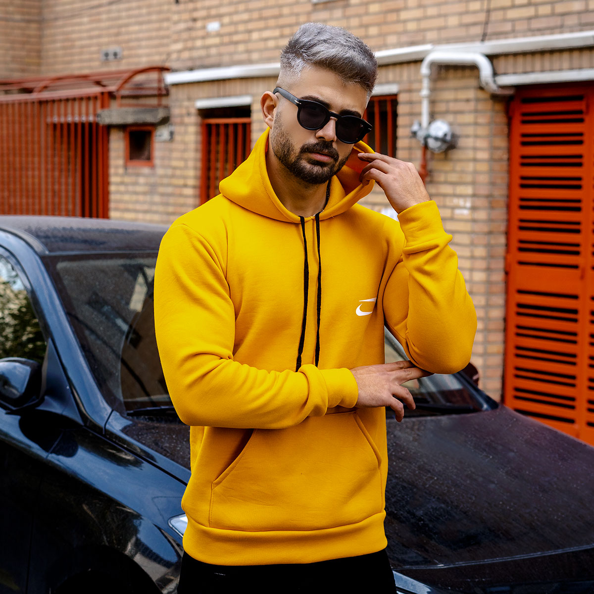 هودی مردانه نایک خردلی مدل Zanko