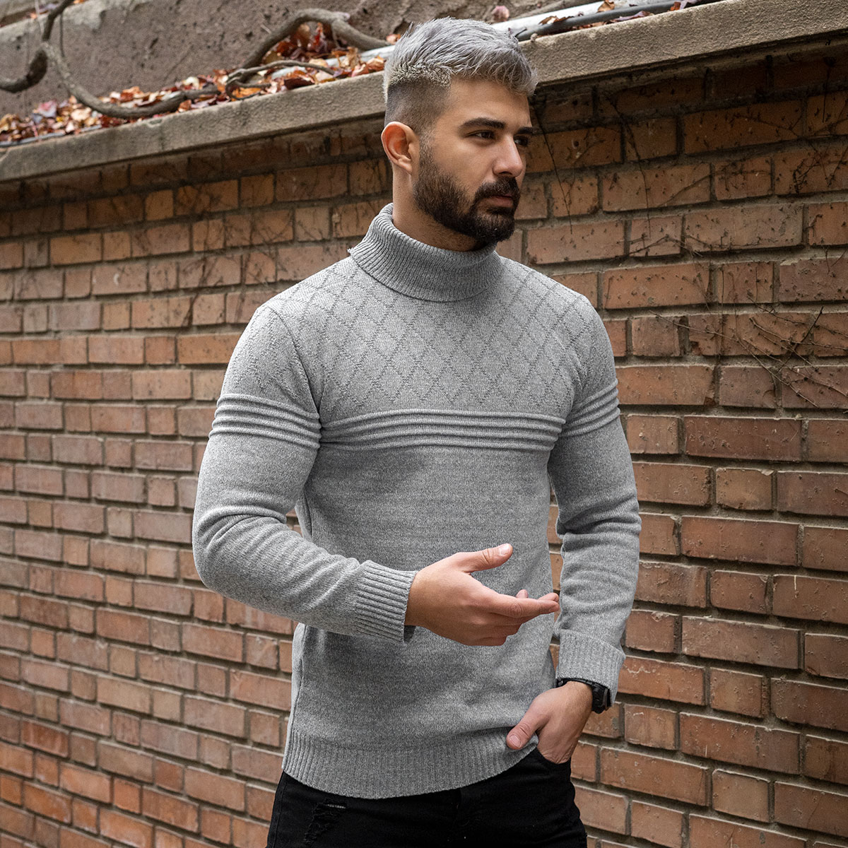 پلیور مردانه طوسی طرح لوزی یقه اسکی مدل Havash