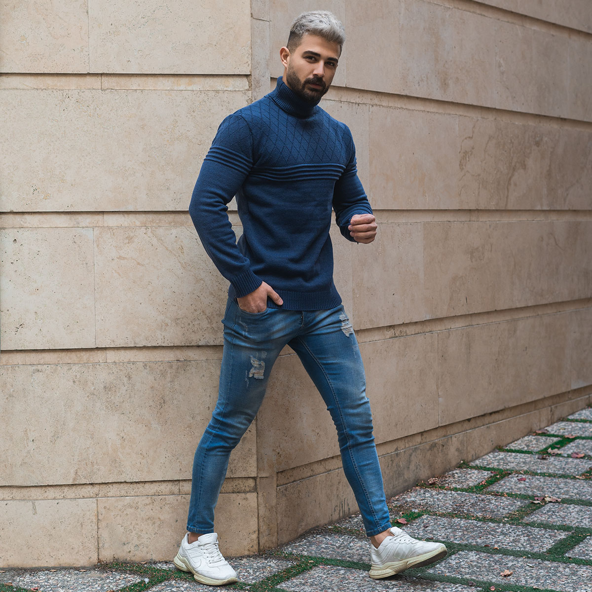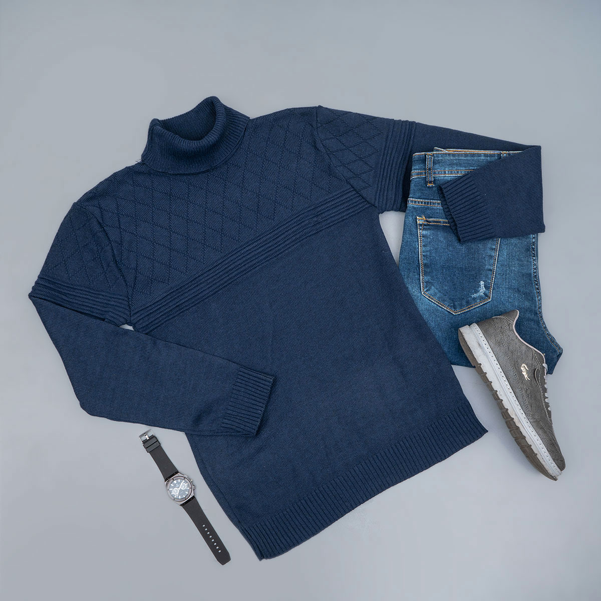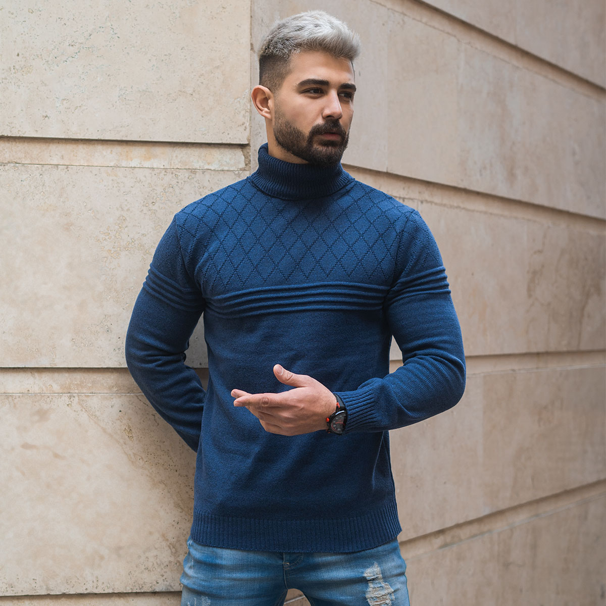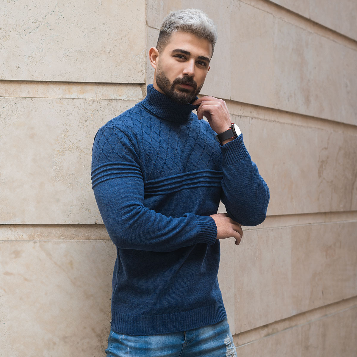 پلیور مردانه آبی طرح لوزی یقه اسکی مدل Havash