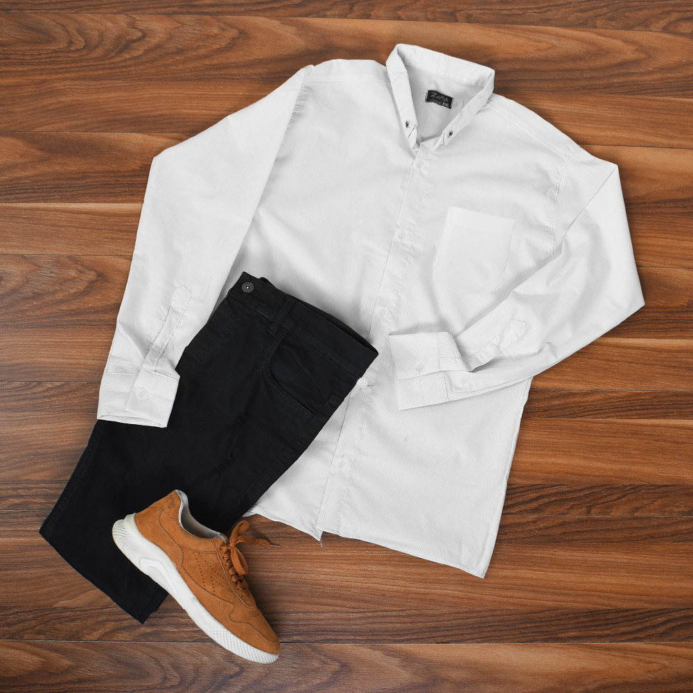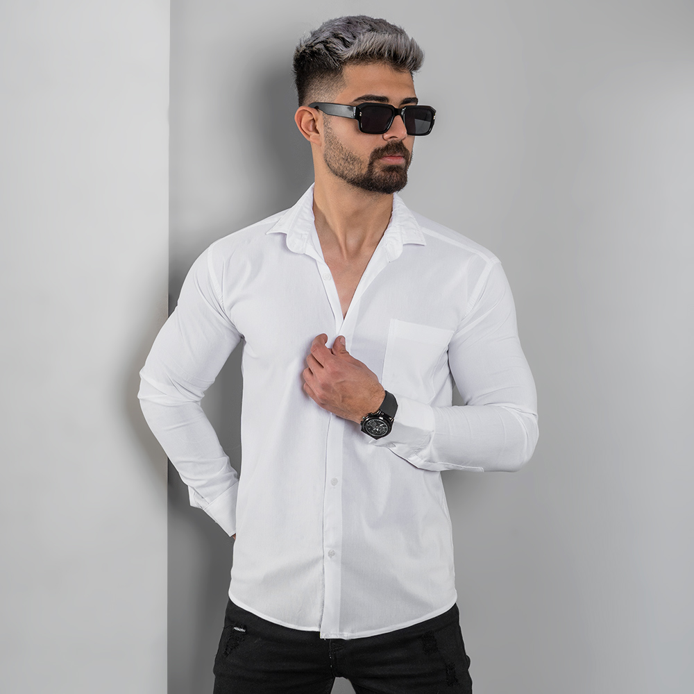 پیراهن مردانه سفید ساده جیب دار مردانه مدل VQ