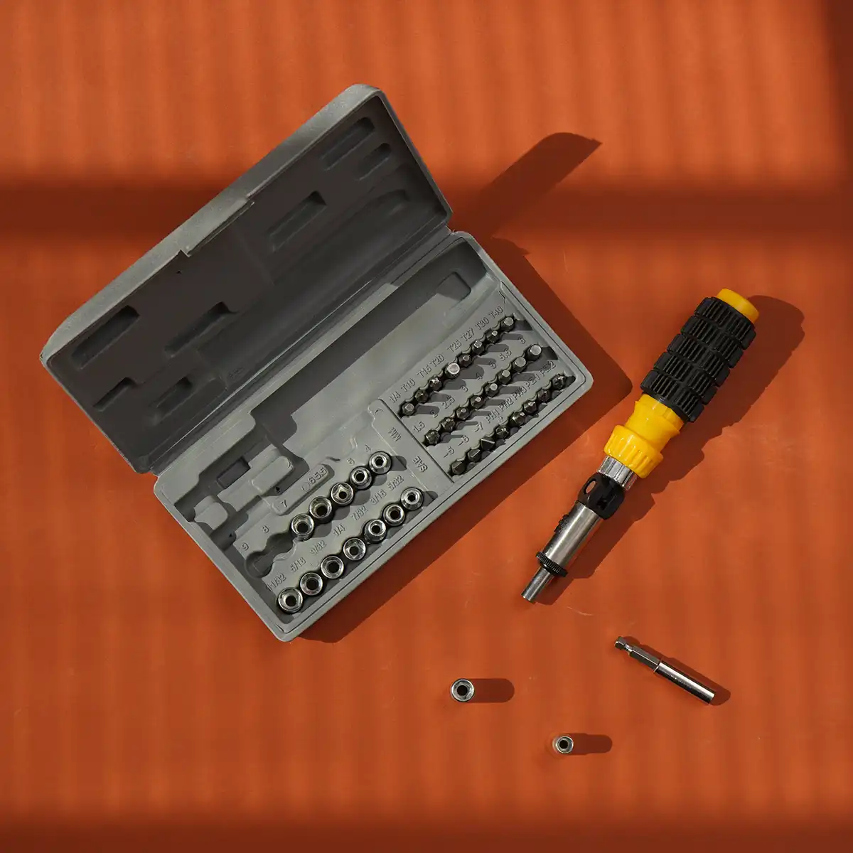 دارای 7 عدد بکس درایو 1.4 میلیمتر به سایزهای 4,5,5.5.6,7,8,9\r\nدارای 7 عدد بکس درایو 1.4 اینچ به سایزهای 5.32, 3.16, 7.32, 1.4 , 9.23, 5.16, 11.23 \r\nدارای 7 عدد سری آلن ستاره ای به سایزهای T10,T15, T20, T25, T27, T30, T40\r\nدارای 8 عدد سری آلن به سایزهای 1.5, 2 , 2.5 , 3,4,5,5.5,6\r\nدارای 3 عدد سری دو سو \r\nدارای 3 عدد سری چهارسو \r\nدارای 3 عدد سری