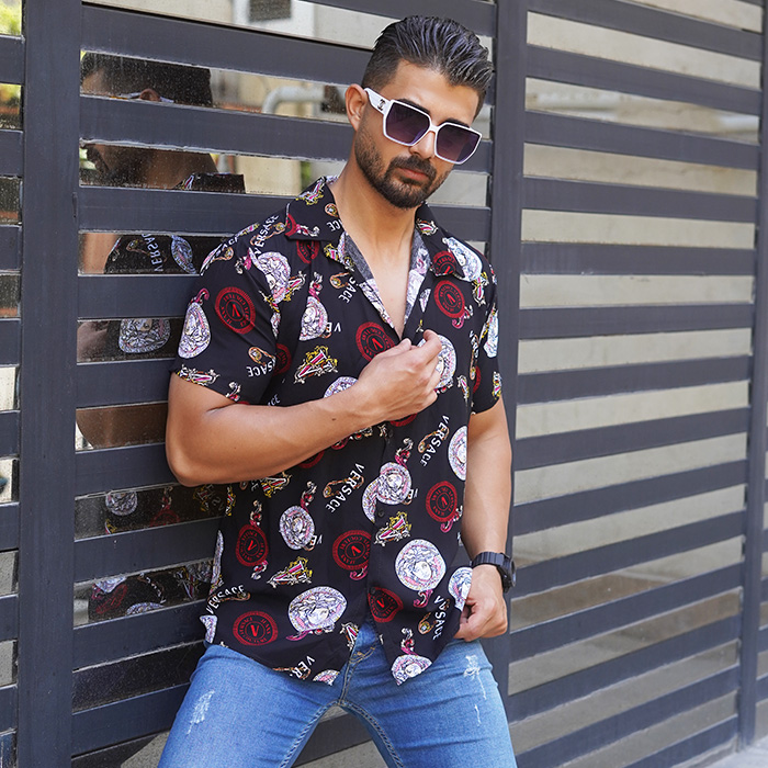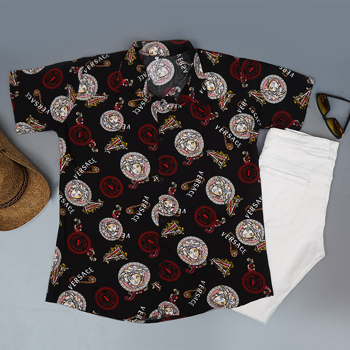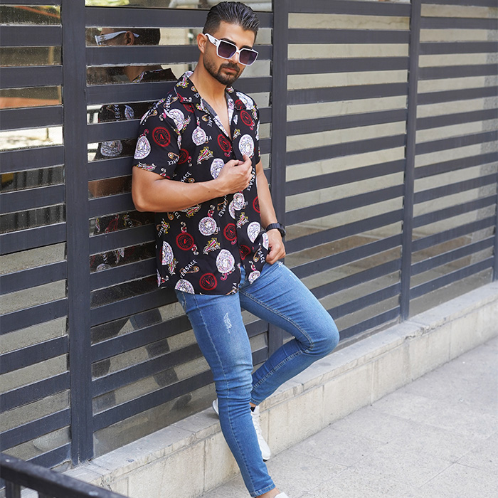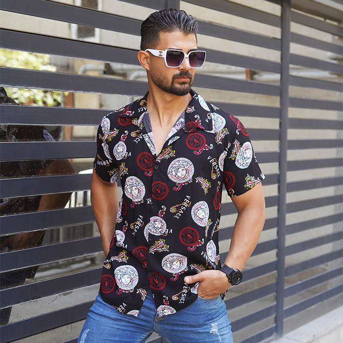 پیراهن هاوایی مردانه مشکی قرمز مدل Florence