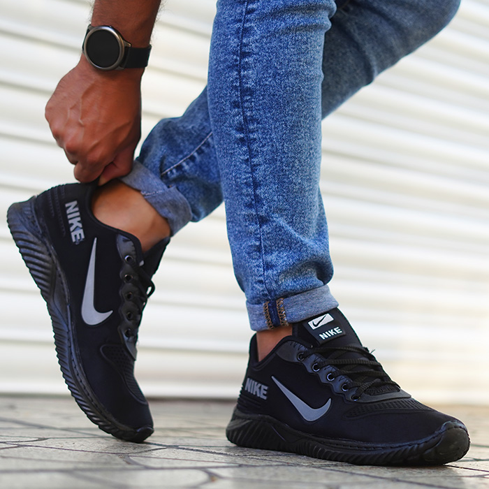 کفش ورزشی مردانه نایک مشکی طوسی مدل Bahman