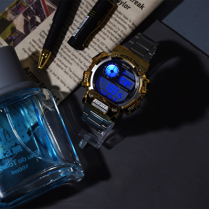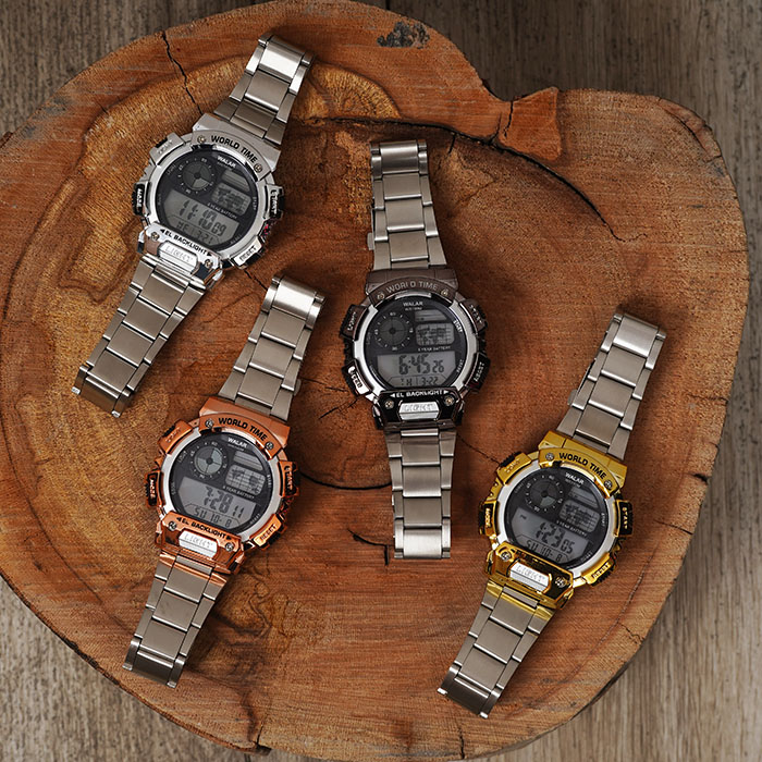 ساعت مچی کامپیوتری طلایی مدل Worldtime