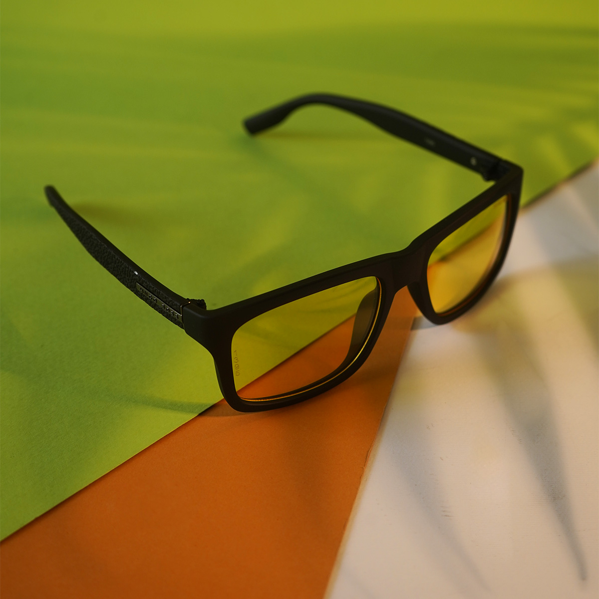 عینک مردانه مشکی صفحه زرد مدل Hugo