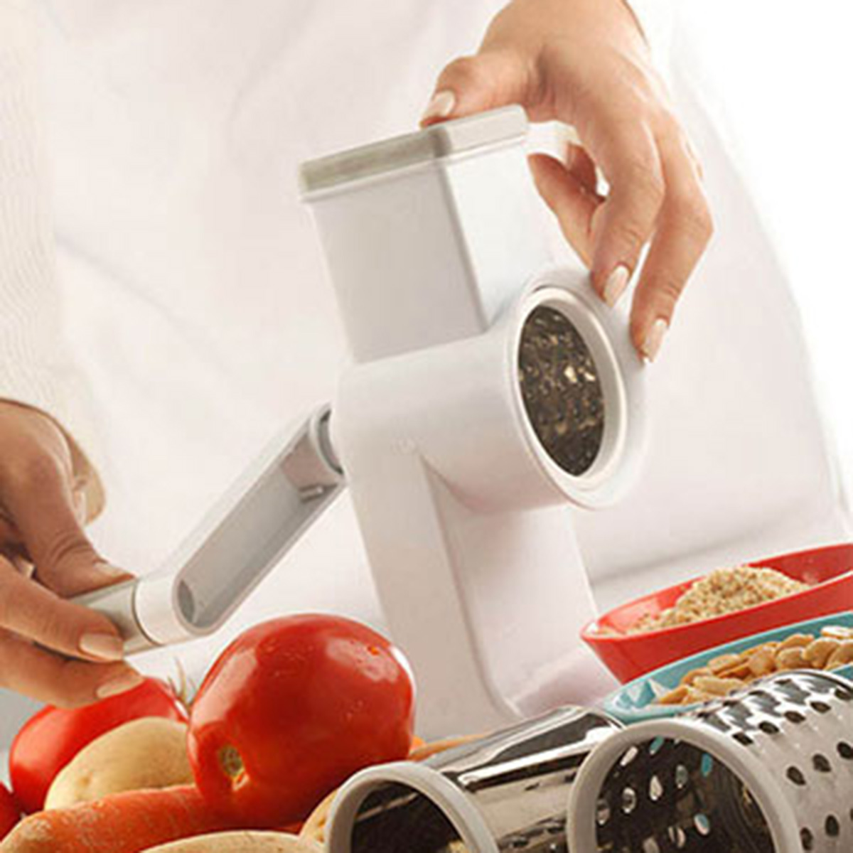 فقط کافی است محصول را توسط پایه های مخصوص روی سطح مورد نظر محکم کنید سپس با یک دست آنچه می خواهید خرد کنید را از بالا وارد مخزن کرده و به پایین فشار دهید و با یک دست دیگر دسته رنده را بچرخانید تا مواد غذایی شما به راحتی رنده و خارج شوند. شما می توانید قطر ورقه های رنده شده را نیز توسط میران فشاری که از بالا وارد می کنید تعیین نمایید. کار با این رنده چرخشی رومیزی بسیار ساده است و واقعا شما را از سختی ها و خطرات کار با رنده های قدیمی راحت می کند.