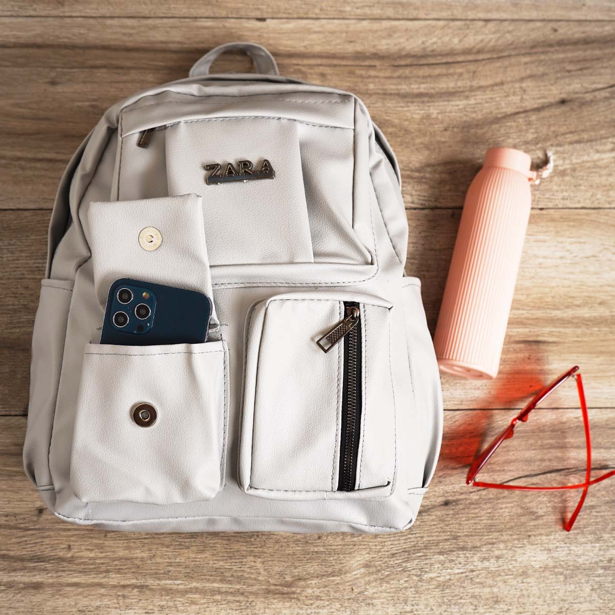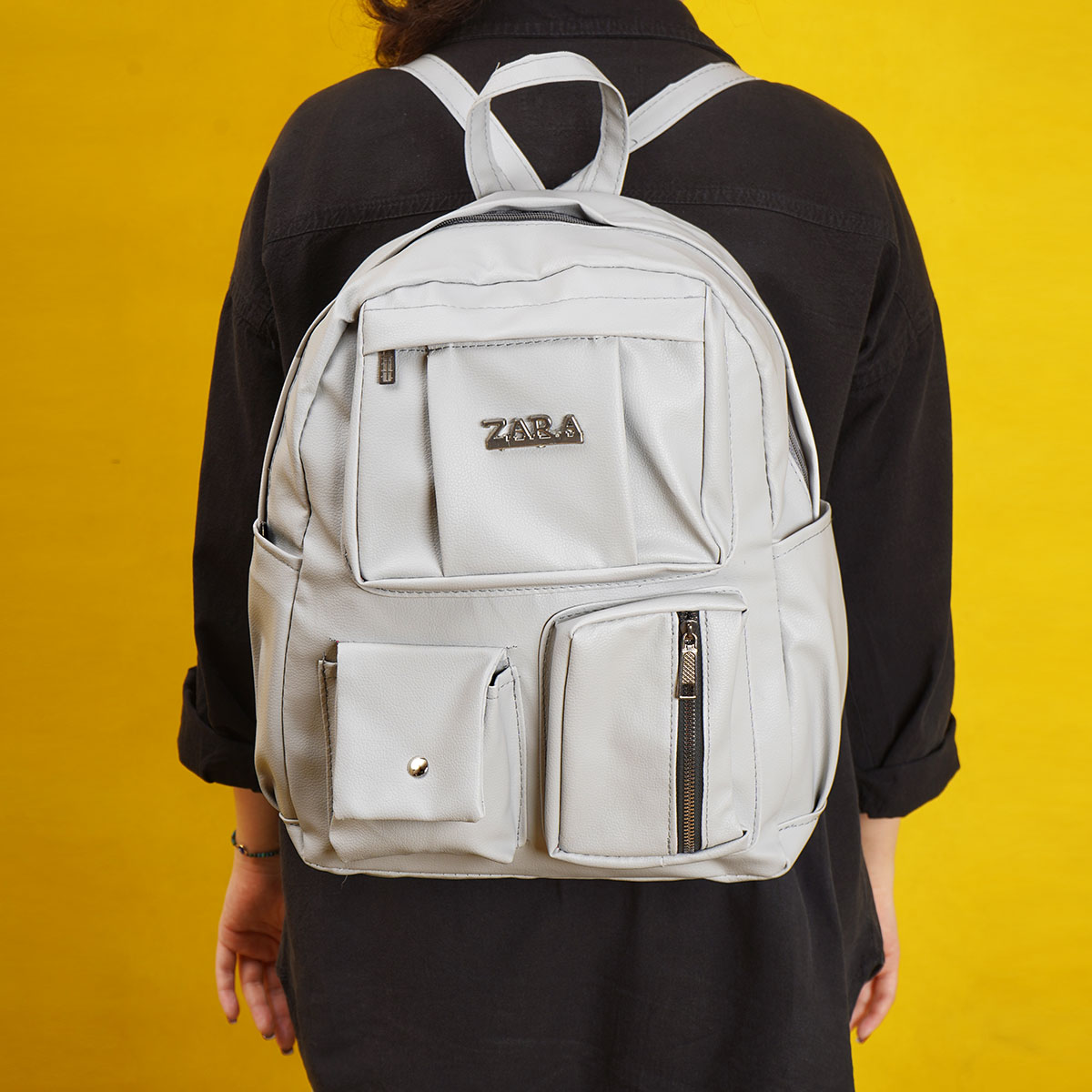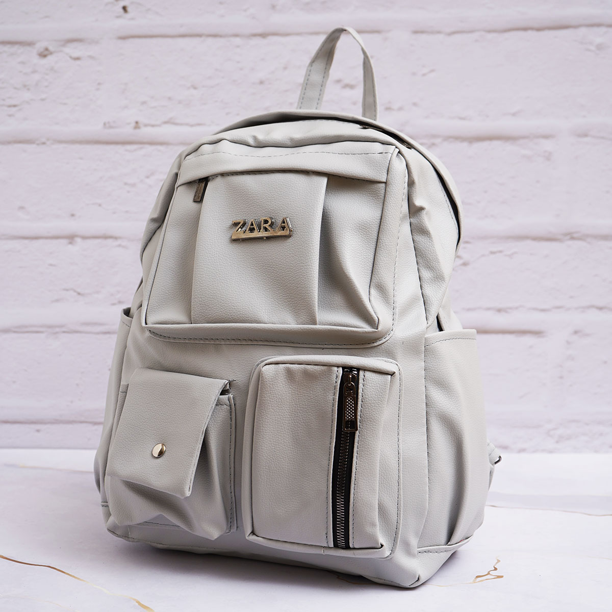 کوله پشتی چرم زنانه طوسی مدل ZARA