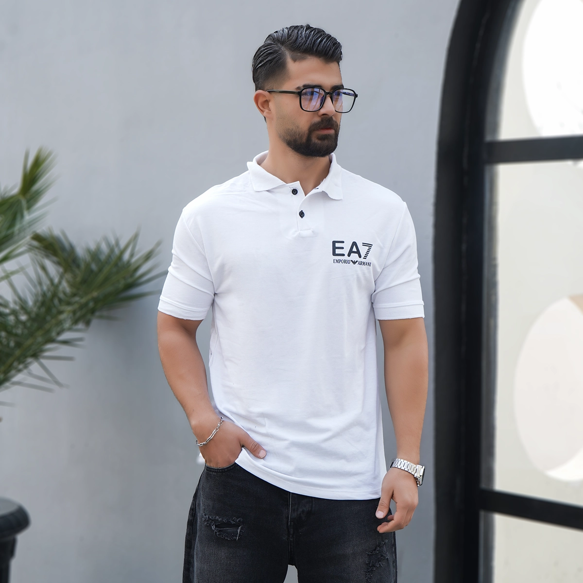 تیشرت سفید مردانه EA7 مدل Nitan