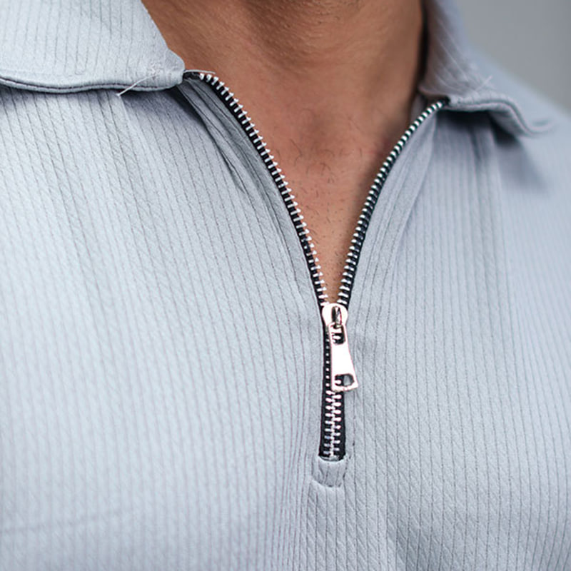 تیشرت مردانه یقه زیپ دار طوسی مدل Arban