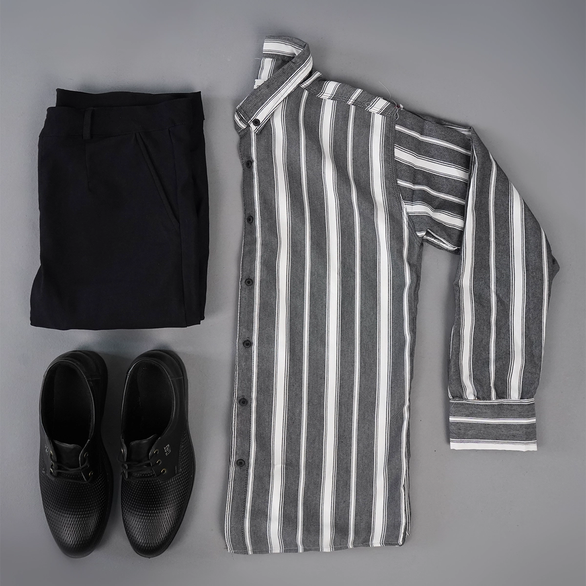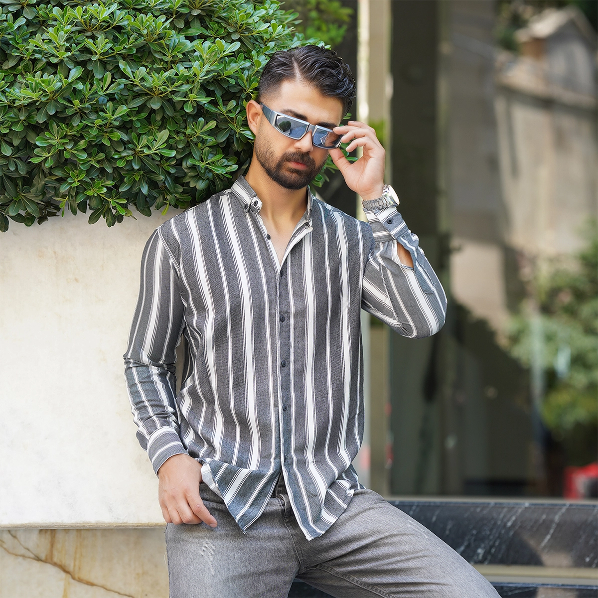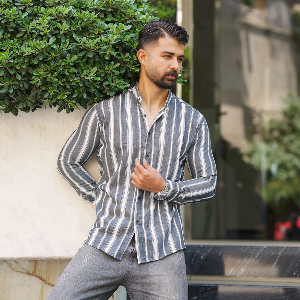 پیراهن راه راه طوسی مردانه مدل Ramin