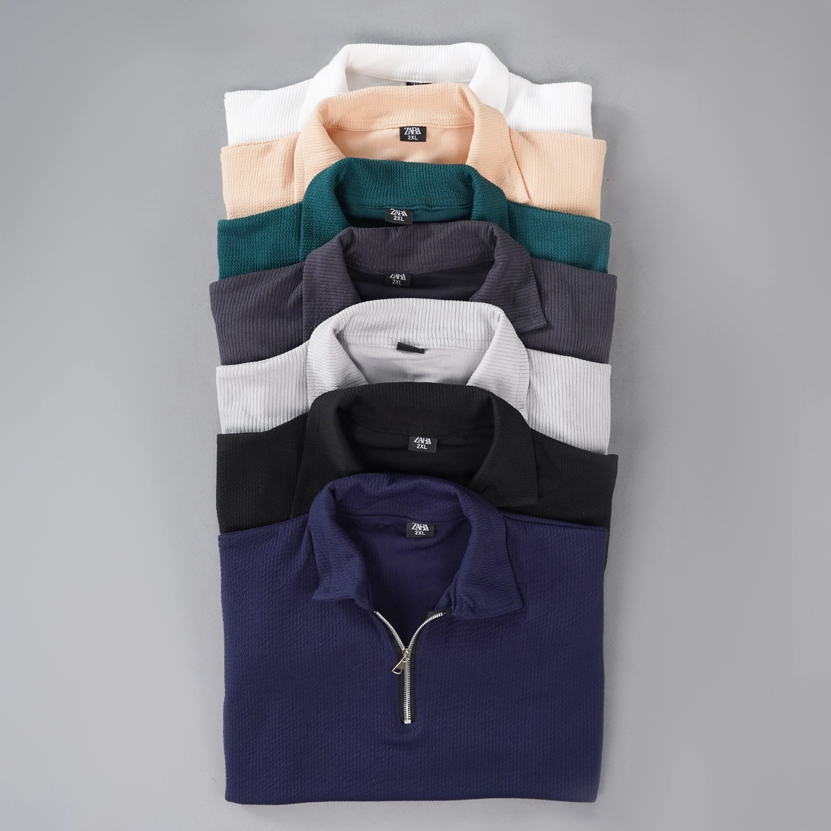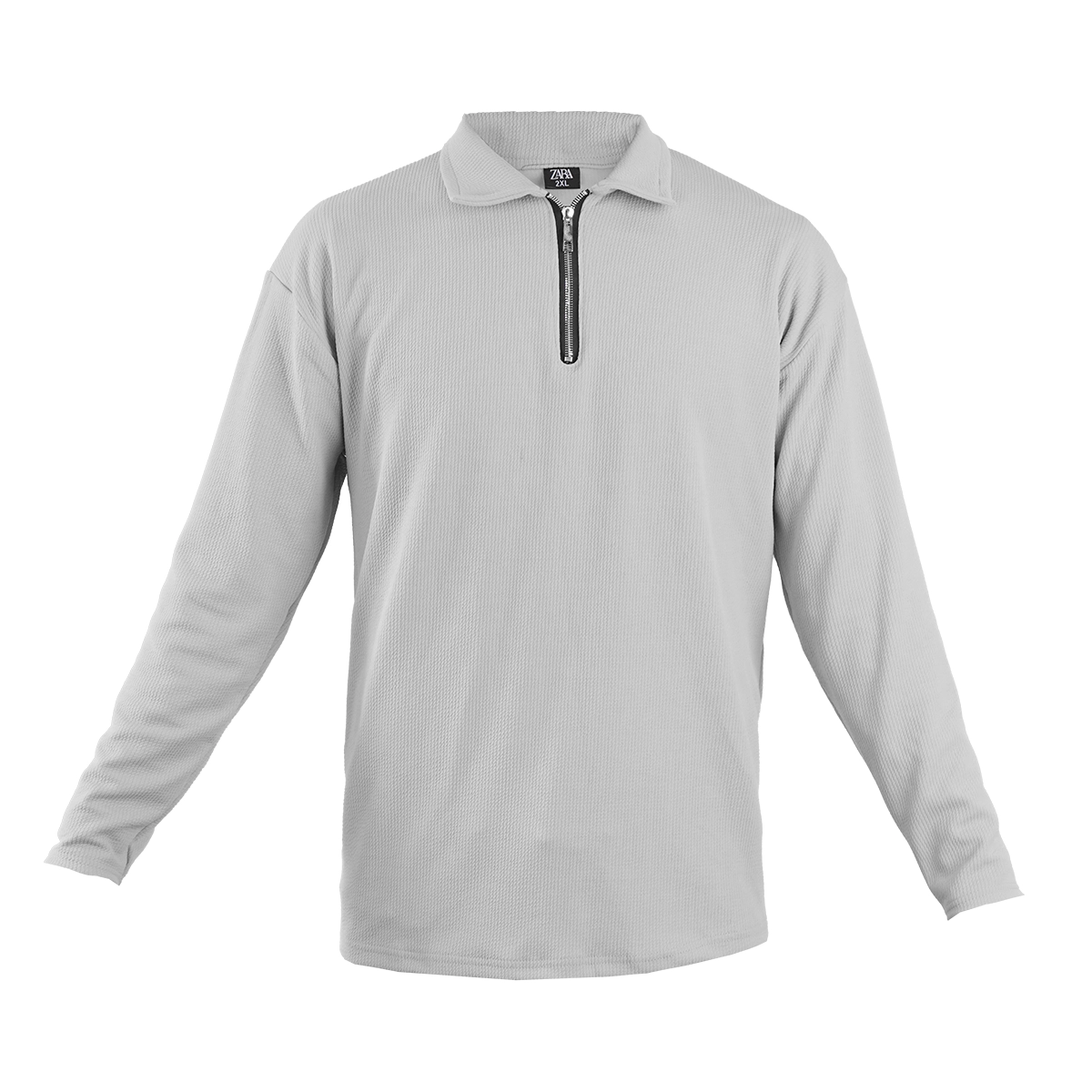 بلوز مردانه نیم زیپ آستین بلند طوسی مدل FARBOD