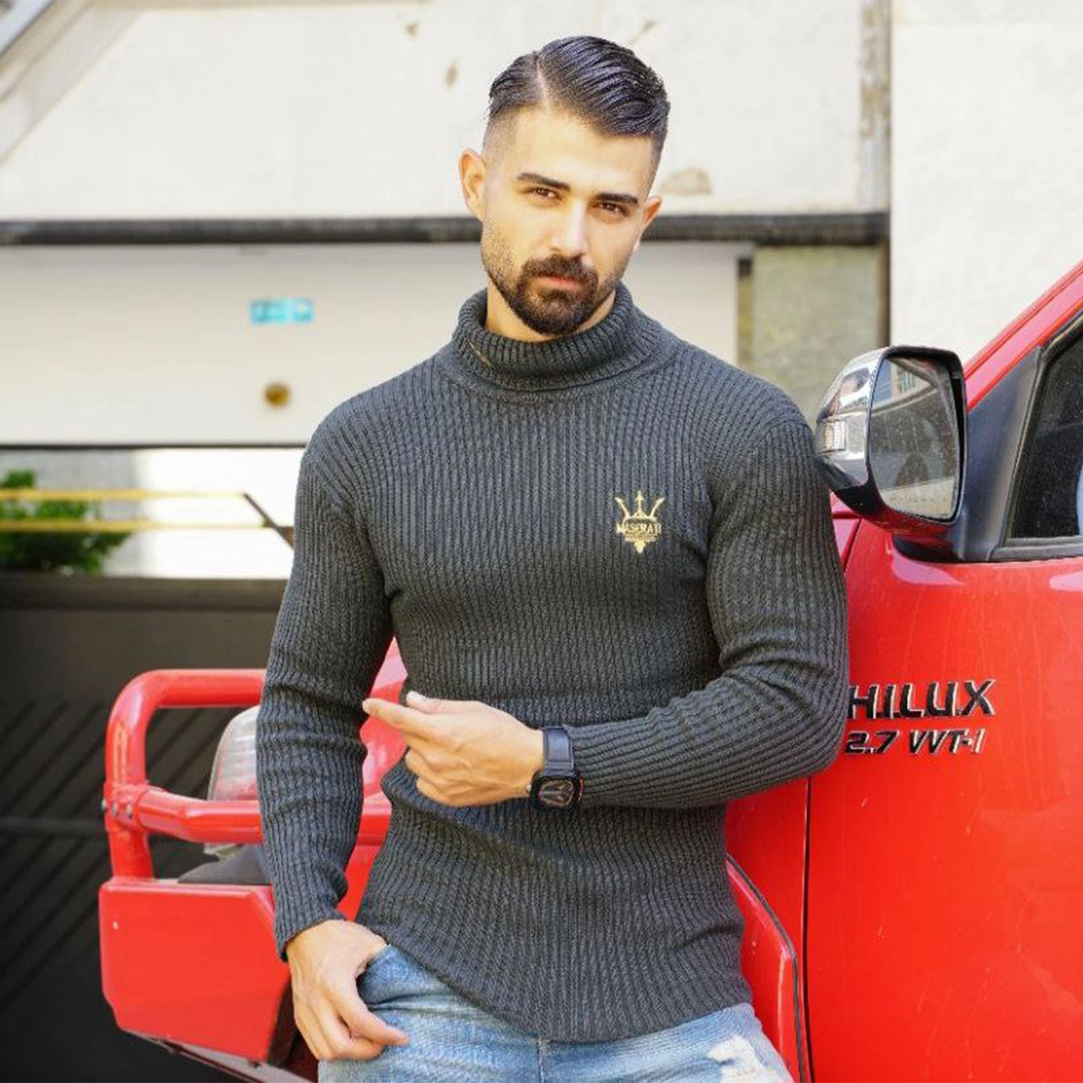 بافت یقه اسکی کبریتی مردانه طوسی مدل Rama