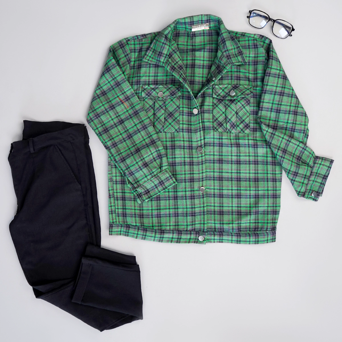 شکت پاییزه چهارخونه سبز زنانه مدل Hoda