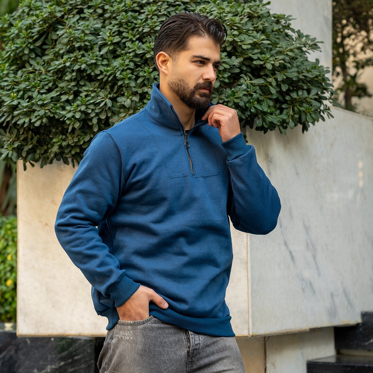 هودی نیم زیپ مردانه آبی مدل Shobin