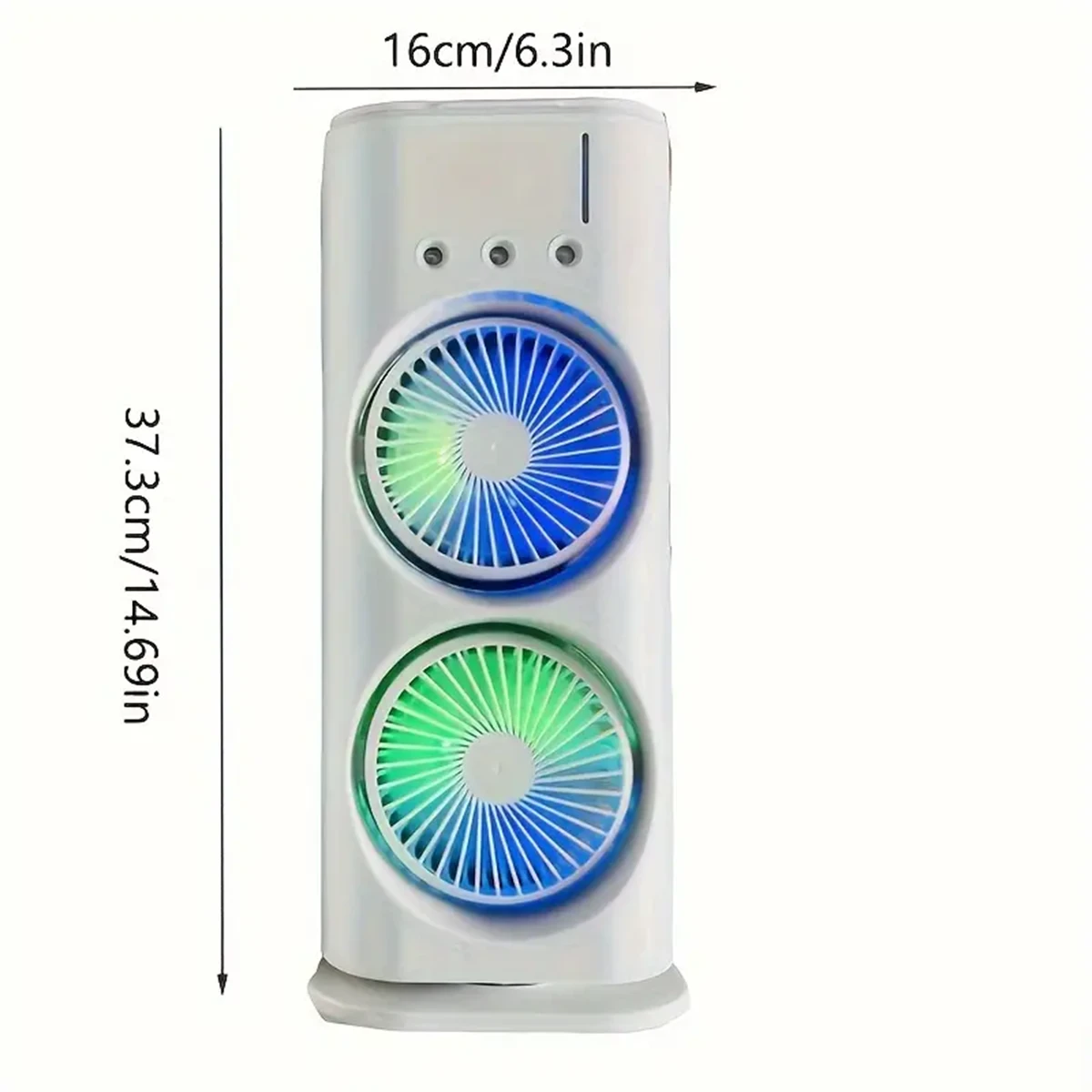 فن دو سر چند منظوره با قابلیت تنظیم سه سرعت باد و چراغ شب رنگی گرم، ایدهآل برای استفاده در هر فضا. جهت باد قابل تنظیم و طراحی زیبا. هماکنون خرید کنید و از خنکی لذت ببرید.