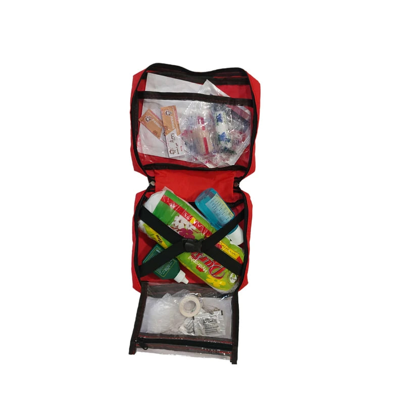 این کیف شامل 12 قلم کالای ضروری و تجهیزات پزشکی است که به صورت صحیح جانمایی شده‌اند تا در مواقع لزوم به سرعت در دسترس باشند: