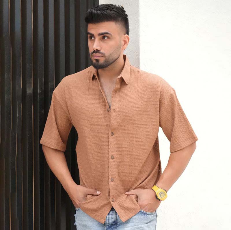 پیراهن مردانه باکسی سوزنی قهوه ای