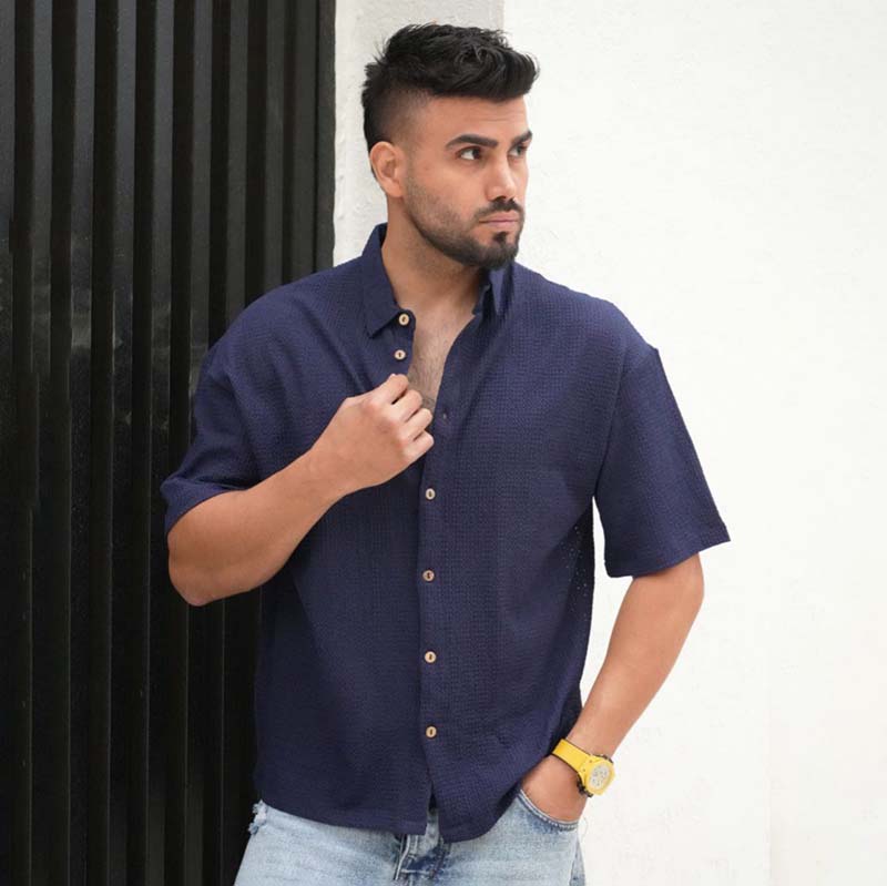 پیراهن مردانه باکسی سوزنی سرمه ای