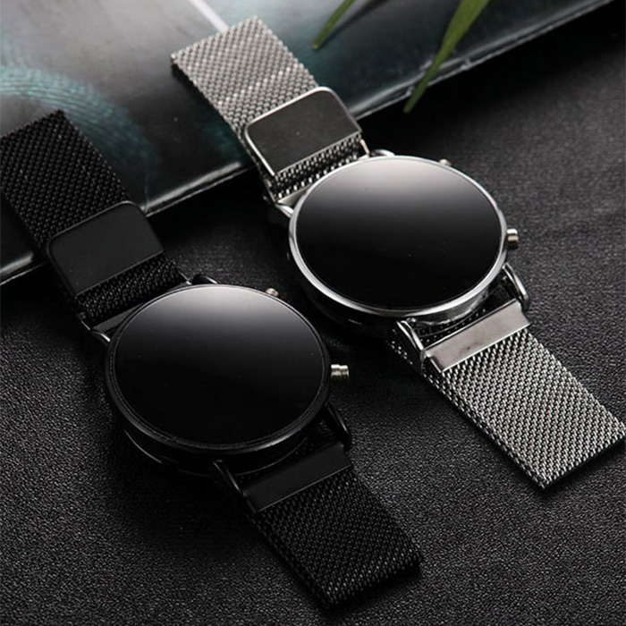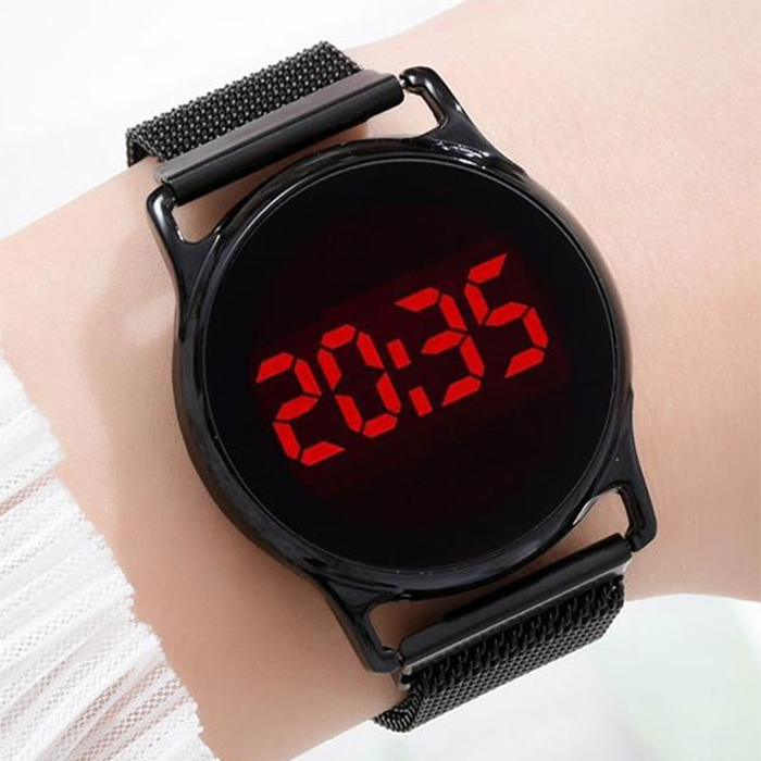ساعت LED بند فلزی مشکی مدل Ronas