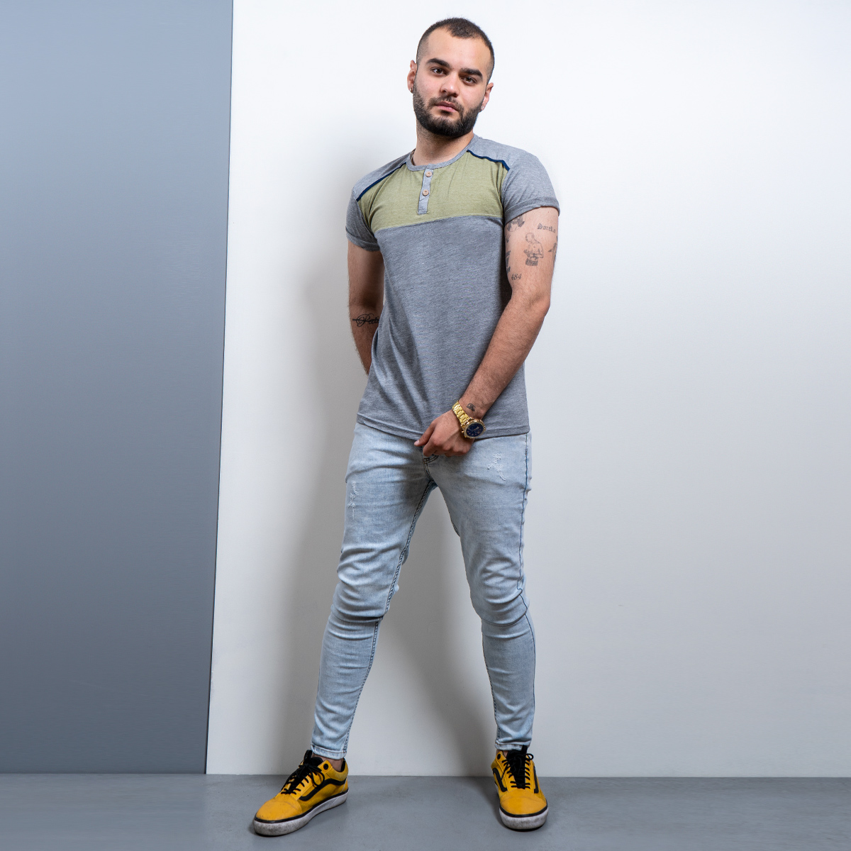 تیشرت مردانه طوسی تیره سبز مدل Ratim(T)
