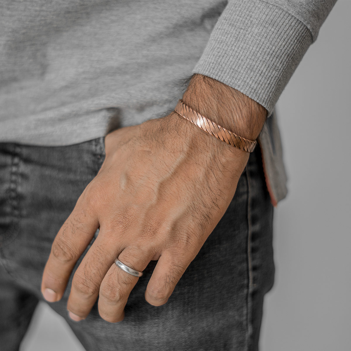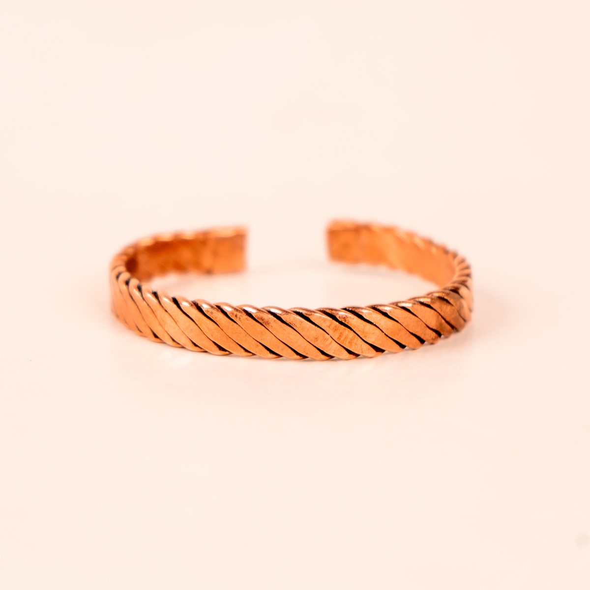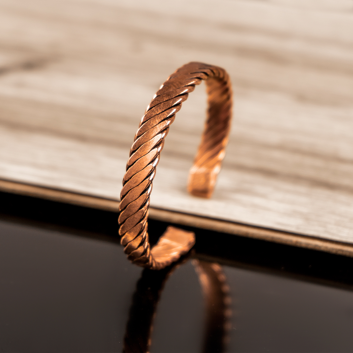 مس یک عنصر حیاتی است که در گیاهان و بدن انسان یافت می شود. استفاده از این فلز به عنوان زیور آلات تاثیرات مثبتی روی بدن خواهد داشت. این دستبند دارای طرا حی زیبا و منحصر به فرد است علاوه بر این مس بسیار بادوام بوده و تا مدت ها میتوانید از آن استفاده کنید.