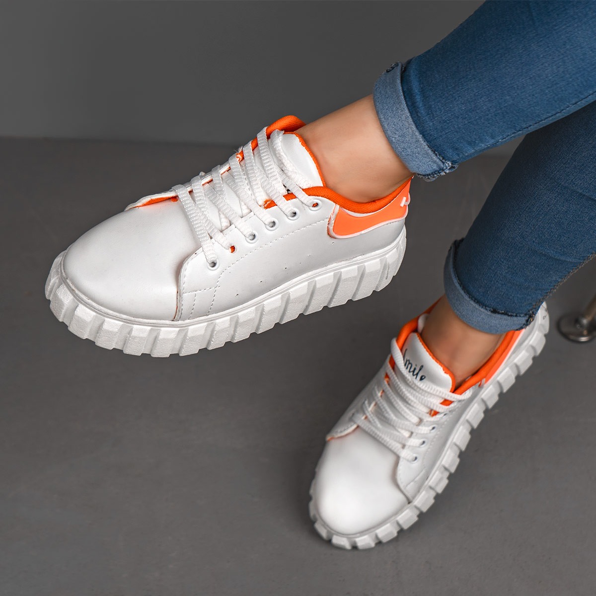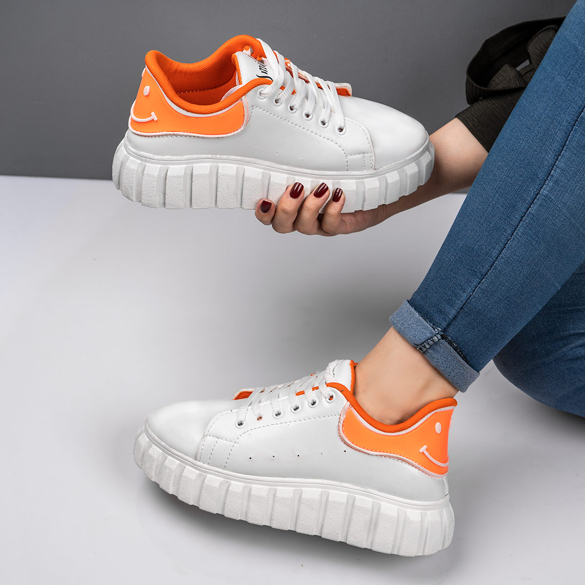 کفش ورزشیsmile زنانه سفیدنارنجی مدل Aspin
